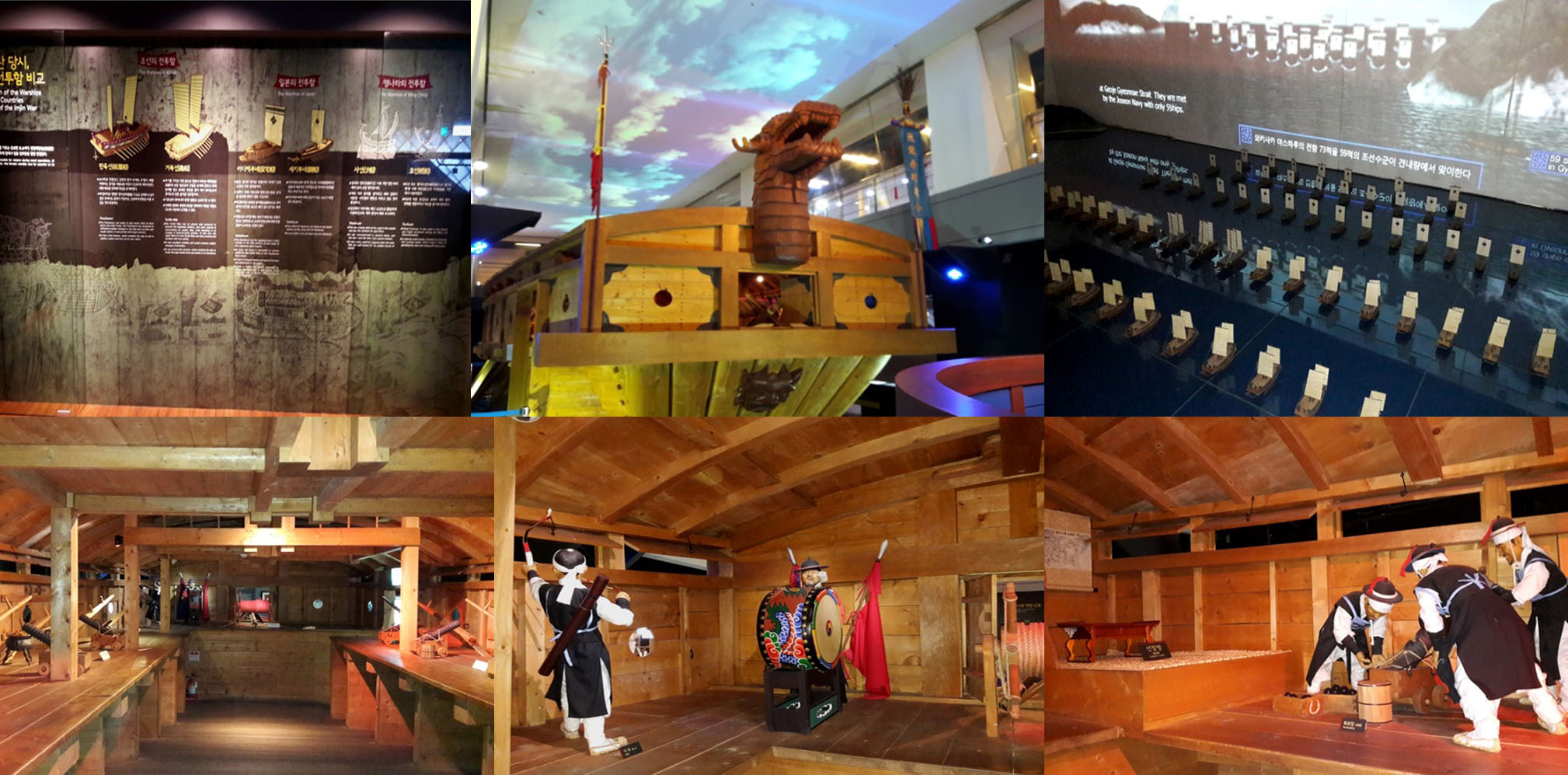 가장 흥미로웠던 건 우리의 또 하나의 자랑 거북선입니다. 거대 거북선 모형이 전시되어 있는데 실제 크기의 55%의 크기로 제작된 것이라고 합니다. 축소된 크기도 사람이 들어갈 수 있을 만큼 크니 거북선의 장대함이 짐작이 갑니다. 거북선 내부로 직접 들어가 볼 수 있는데 실내도 꽤 넓습니다. 내부는 모형 인형으로 거북선 안에서 실제 전투에 임하는 모습이 친절하게 재현되어 있습니다. 모형들을 자세히 보면 세세하게 디테일에 신경 쓴 것을 알 수 있습니다. 이곳에서 노젓기와 수군의 무기 체험, 대포 쏘기, 사진도 찍을 수 있도록 다양하게 준비되어 있습니다. 저는 이 전시관을 몇 번 방문해 보았지만 의외로 방문객이 많지 않습니다. 학교에서 단체로 학습 견학온 학생 그룹과 외국인들이 몇몇 보였습니다. 학생들 학습체험으로 당연히 너무 훌륭하지만 데이트 장소로도 좋은 공간이란 생각이 드는 멋진 곳입니다. 경복궁엔 많은 사람들이 방문하는데 이곳은 아직 홍보가 덜된 것 같은 생각이 드네요. 개인적으로 조용히 전시관을 둘러보며 감상하기는 좋았지만 이렇게 잘 만들어진 공간이 널리 알려졌으면 좋겠습니다.