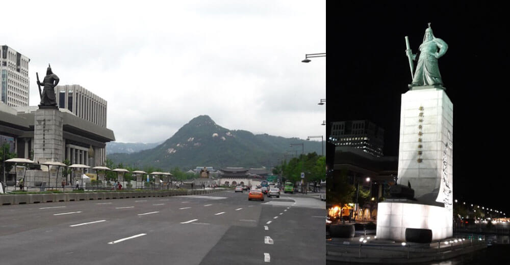 광화문 광장에서 낮과 밤 항상 그 자리에서 지키고 계시는 충무공 이순신 장군님! 광화문의 상징이 된 이순신 장군 동상입니다. 그 당당함이 언제 보아도 든든합니다. 한 때 동상을 대청소하기 위해 천을 덮어 놓은 적이 있었는데 오가며 뭔가 너무 허전한 느낌이 들었습니다. 빨리 청소가 마무리되길 기다리던 기억이 있습니다. 이순신 장군 동상 뒤로는 세종대왕, 경복궁, 북악산이 보입니다. 뒤에 보이는 세종대왕 동상 뒤편에는 지하로 내려갈 수 있는 입구가 있습니다. 지하 계단이나 엘리베이터를 타고 내려가면 이순신 장군 전시관과 세종대왕 전시관이 있습니다. 임진왜란과 전투 모습을 자세히 이해할 수 있고 이순신 장군의 업적과 생애, 인간적 면모를 생생히 알려주고 있는 이순신 지하 전시관을 소개해 드리겠습니다.