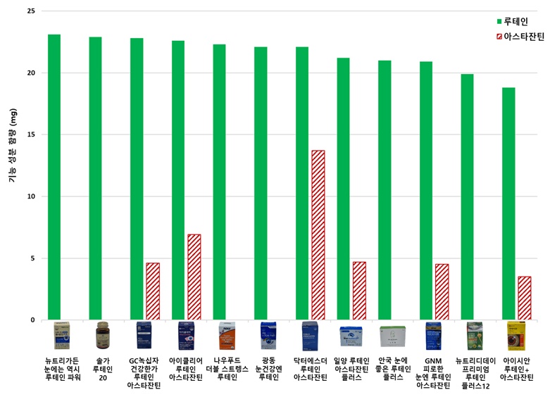 [루테인, 아스타잔틴 함량 시험 결과표-소비자보호원]