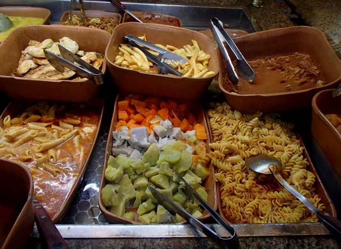브라질의 저렴한 식당들은 대부분 무게를 달아서 음식을 판매를 합니다. 고급 음식점은 그렇지 않지만 일반적인 다수의 식당과 레스토랑이 뷔페식으로 차려져 있습니다. 접시에 각자 먹을 음식을 담아서 무게를 달아 계산 후 식사하는 방식이고 음료 등은 따로 주문을 합니다. 음식도 남기지 않고 자신이 먹을 것만 선택할 수 있는 이런 방식도 꽤 좋다는 생각이 들었습니다. 위 사진에 종지에 담긴 '페이조아다'라는 음식은 브라질 전통 음식입니다. 우리나라 김치처럼 가정집에서도 빠지지 않고 나오는데 언듯 보면 팥죽처럼 보이는 '페이종'이라는 검은콩을 끓인 음식입니다. 콩만 들어간 것도 있고 고기와 소시지등을 함께 끓이기도 합니다. 옛날 흑인 노예들이 주인이 버린 돼지 부위등을 검은콩과 함께 삶아 먹으며 유래되었다고 합니다. 보통 카레밥 먹는 것처럼 쌀밥 위에 얹어 먹는 브라질을 대표하는 음식입니다. 처음엔 좀 생소하나 은근 중독성이 있어 저도 꼭 밥 위에 뿌려서 먹었던 기억이 납니다. 그리고 브라질도 밥이 주식에 하나이지만 브라질 밥 짓는 방법은 우리와 크게 다릅니다. 일단 쌀 자체가 우리나라 쌀보다 가늘고 깁니다. 우선 냄비에 상당히 많은 양의 기름을 넣고 마늘, 소금을 넣고 볶다가 씻지 않은 쌀을 넣고 마지막에 약간의 물을 넣고 끓이는 방식입니다. 볶음밥은 아니고 오일을 물대신 넣고 끓인다고 생각하시면 됩니다. 그러면 밥알이 고슬고슬하고 한 알 한 알 살아 있는 듯한 밥이 완성됩니다. 저는 이게 너무 신기했는데 브라질 친구들은 오일을 넣지 않는 저의 밥 짓기를 놀라워했습니다.