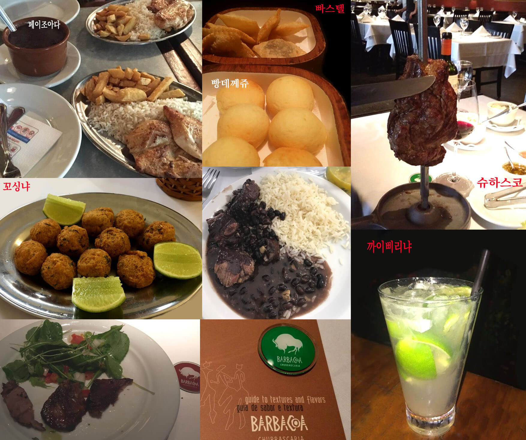 저는 워낙 음식을 가리지 않고 잘 먹는 편이라 김치 없이도 살 수 있는 사람이라 스스로 생각하며 살았습니다. 그러나 그건 저희 착각이었는지 외국을 1년 정도 자유여행으로 돌아다니면서 못 견디도록 한국 음식이 먹고 싶은 건 아니었는데 이상하게 먹어도 먹어도 배가 부르지가 않았습니다. 외국음식도 잘 먹어서 많이 먹고 다녔고 심지어 1일 5식을 할 때도 있었지만 뒤돌아 서면 배가 고팠습니다. 잘 먹고 여행했는데도 10kg이 빠진 걸 보면 저는 역시 밥을 먹어야 힘을 내는 한국 사람이 맞았나 봅니다. 그래도 이제는 가끔 브라질 현지 음식의 맛이 그리울 때도 있어 브라질 음식들을 정리해 보았습니다.